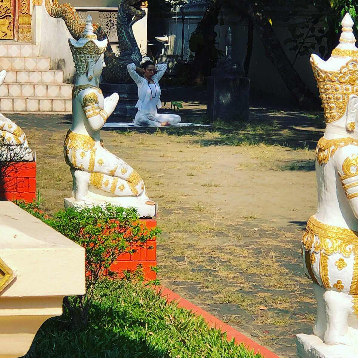 というのでその方に行ってみると、白し服を着た女性が、カメラを前にしてヨガのポーズをしながら撮影してました。